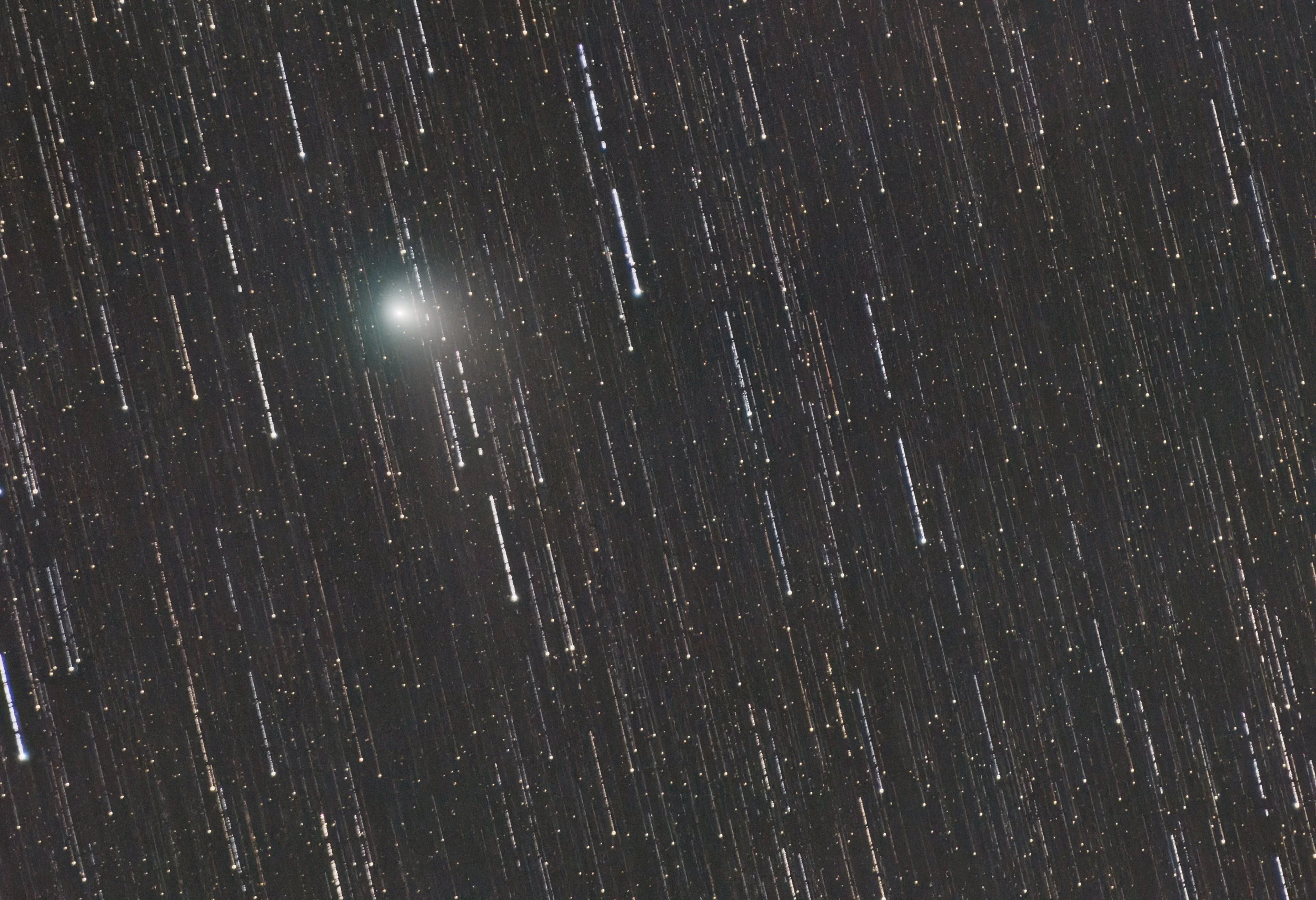 The video here shows my final stacked image of the stars with a blur of the comet. To separate the stars from the comet and background I used starnet++. Removing the stars allowed me to clean up the background and blur. Once I got the stars how I liked I was able to paste them back into the image and align them with the end of their streaks to give a nice representation of the motion of the comet.